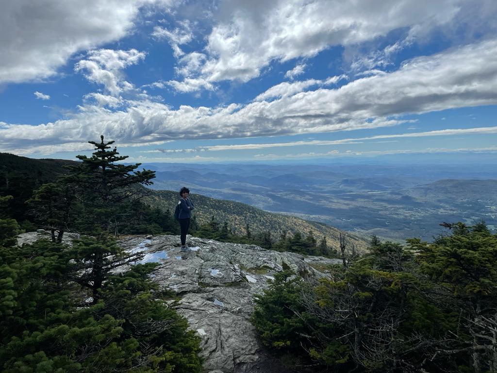 The first morning of our stay, we hit Mt Mansfield for hiking. Mt Mansfield is the highest mountain in Vermont that peaks at 4,395 feet above sea level and the trail head was roughly a 10 mins drive from our place of stay. The entire trail is 7.3 miles, but you can drive up to certain points up a gravel road and start walking from your desired location. We may have just walked 2.5 miles back and forth from our starting point but nevertheless ending to some spectacular views of the valley. Only thing, we did not gear up well for the weather as it got pretty chilly at the top but who cares if you are walking on clouds.